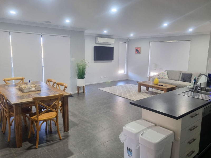 The Three Rivers DRH Cowra student accommodation is located in a quiet residential area. The house is a five-minute drive (40-minute walk) to the Cowra Health Service and town centre.